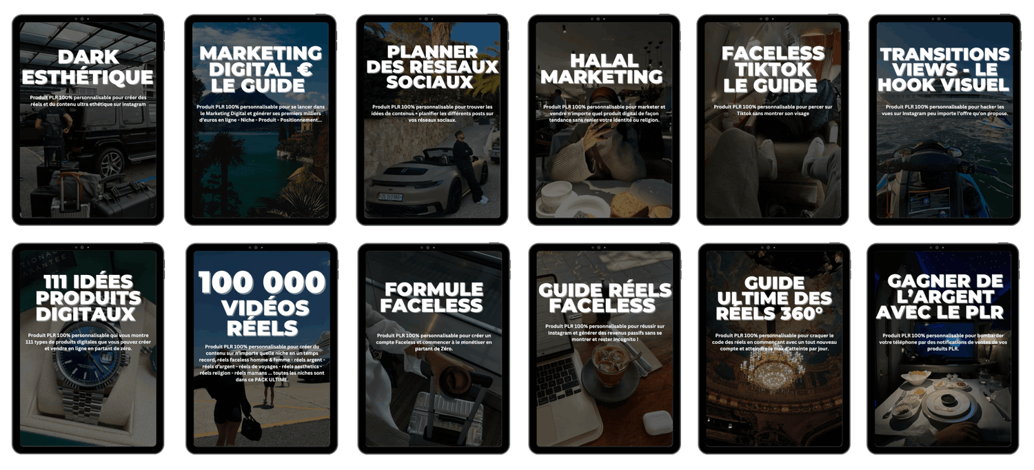 DE PLUS, TU AS ACCÈS À 12 PRODUITS PLR 100% PERSONNALISABLE QUE TU PEUX REVENDRE À TA GUISE ET GARDER TOUS LES BÉNÉF !